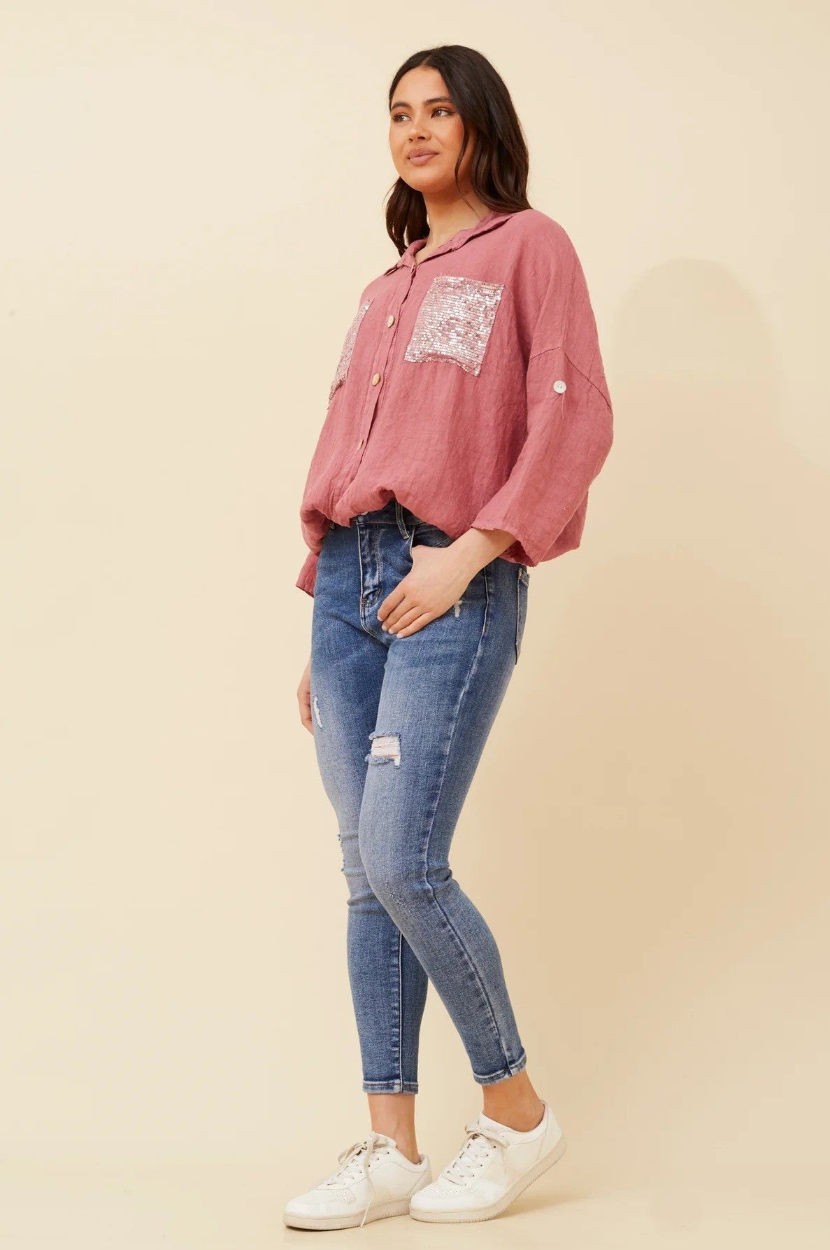 Produced in Italy, this versatile top pairs the breathability of linen with the brilliance of sequins - keeping you cool, comfortable and dazzling all summer long.