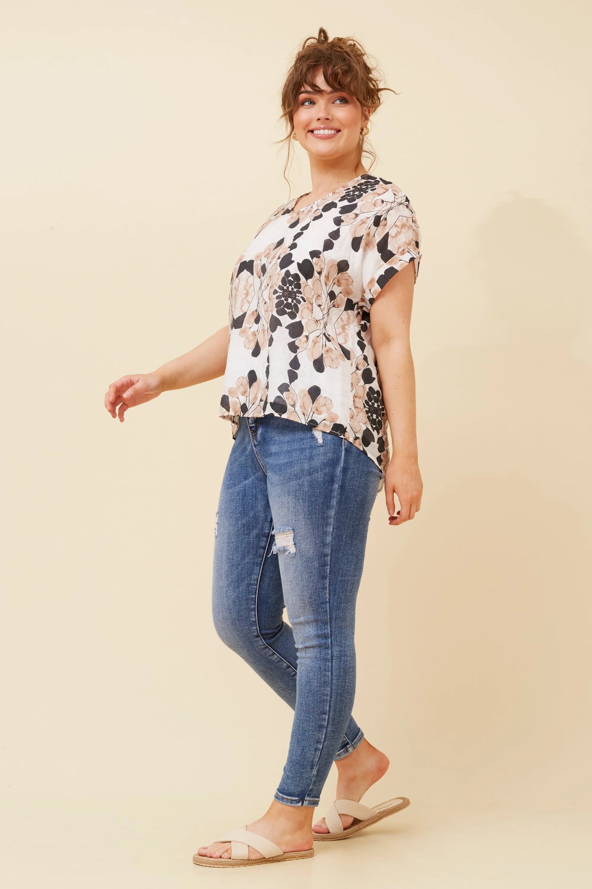 Grounded, expressive, and quietly bold—this mirrored leaves printed top brings soft structure to your everyday. With its neutral palette and symmetrical print, it’s a versatile piece that moves easily from your first coffee to sunset.
