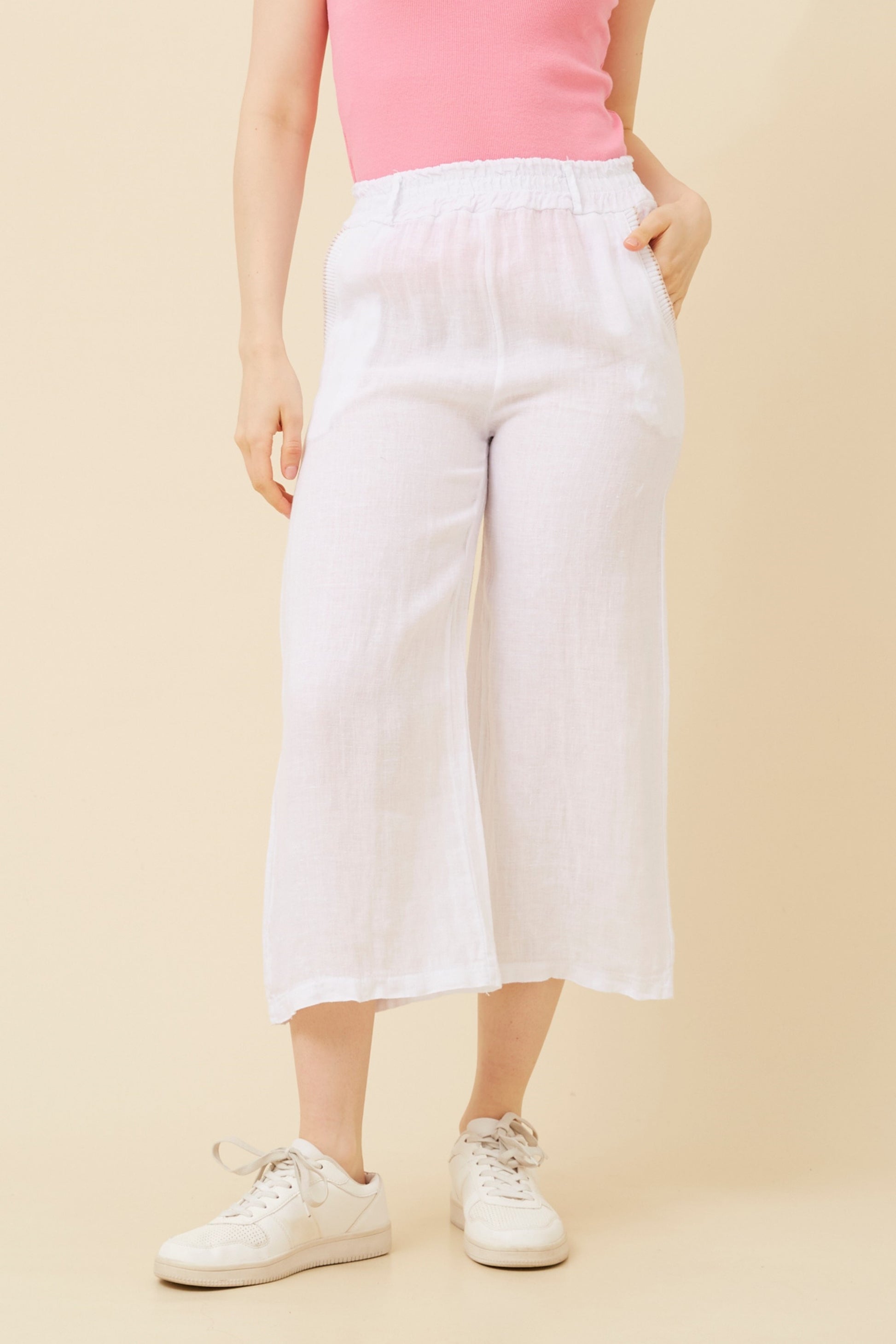 Designed for comfort our Wide 7/8 Linen Italian Pants combine effortless elegance and everyday ease. Crafted in Italy and featuring with a flexible stretch waist, sparkling pockets, and a relaxed wide-leg silhouette in breathable linen, these pants move with you from casual mornings to polished evenings. Light, luxe, and endlessly wearable.